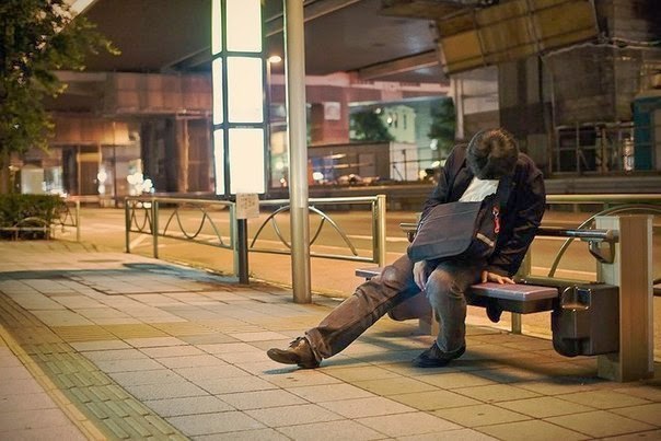 Хорошо известно, насколько японцы трудолюбивы, у них одна из самых высоких в мире производительность труда. Но чудес не бывает, и за такие высокие результаты приходится расплачиваться, изнуряя себя так, что добраться до дома уже нет никаких сил. Люди валятся с ног и засыпают прямо на улице и в других общественных местах. Перед Вами серия фотографий британского фотографа Эдриана Стори (Adrian Storey), сделанная на улицах Токио.